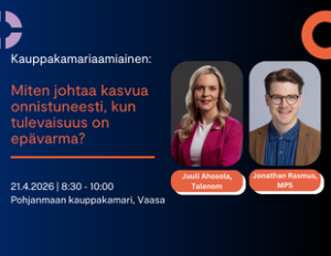 21.04.2026, Vaasa Kauppakamariaamiainen: Miten johtaa kasvua onnistuneesti, kun tulevaisuus on epävarma? Vaasa